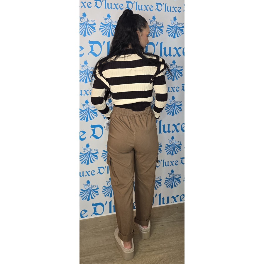 Pantalón Bolsillos con goma y cordón en cintura pierna pitillo elástico con bolsillos a los lados (Talla APRX 34/42)