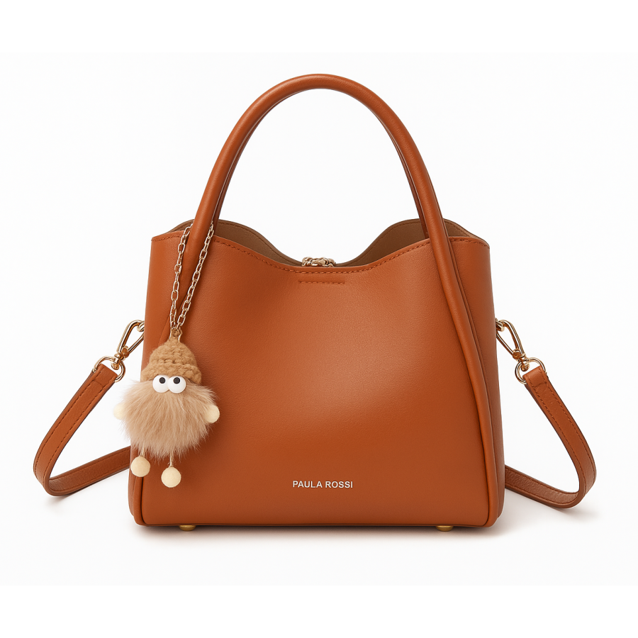Bolso Jimena asa corta y dentro correa larga con compartimentos y llavero colgado en la tira